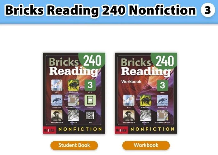(Instant Download)Bricks Reading 240 Nonfiction: High quality PDF (Student book, Workbook), audio, answer key, test, resources (Lesson plan, test, worksheet, Word list, Script ...)